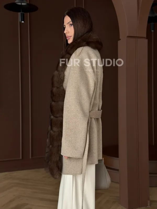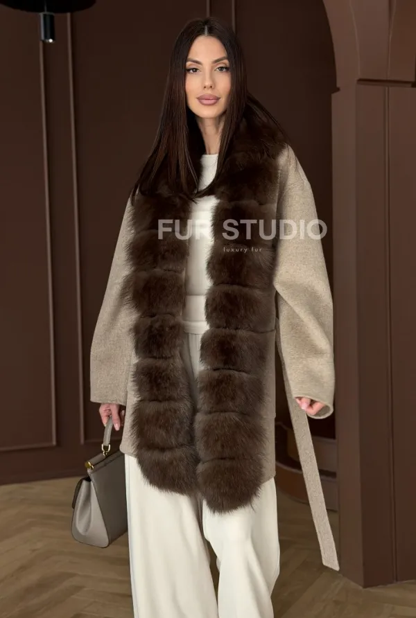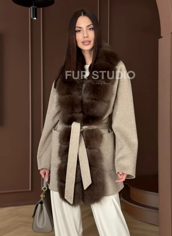Пальто с отделкой из меха песца 102908