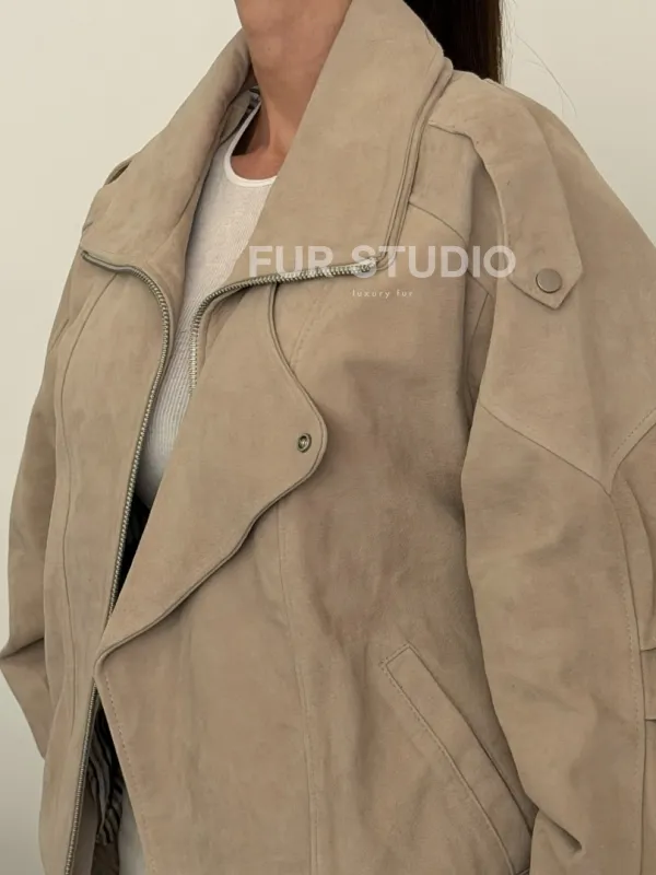 Современная куртка из замшевой кожи доступна для покупки в нашем шоуруме Furs Studio в , где также предоставляется удобная доставка во все города России.