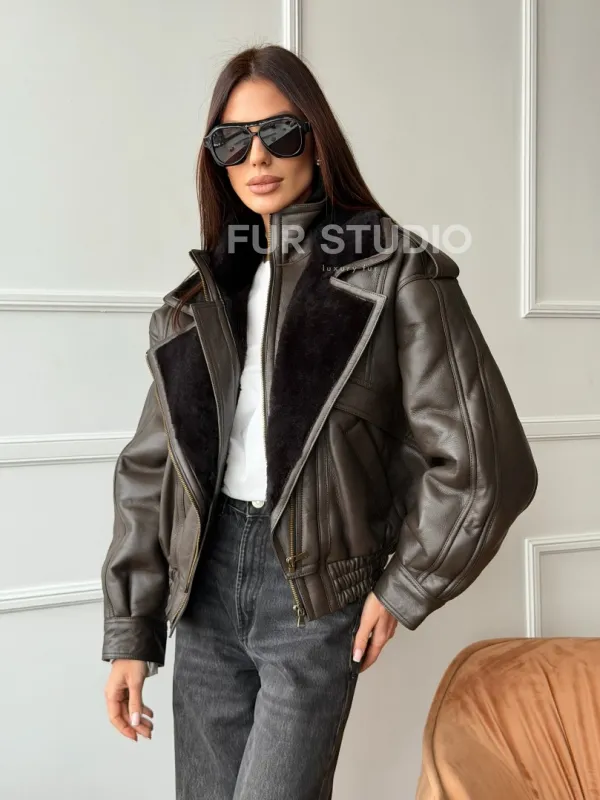 Стильная куртка - дубленка из овчины 102762