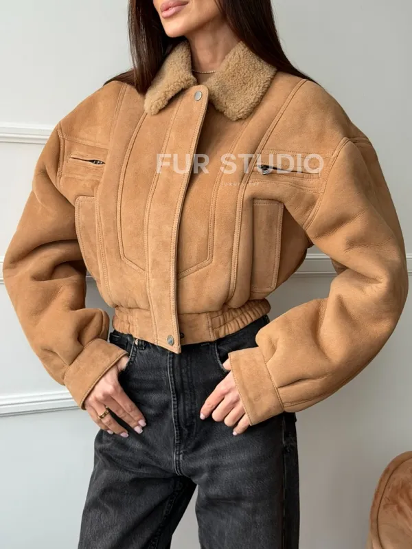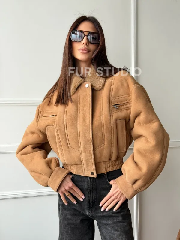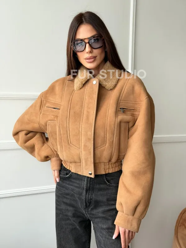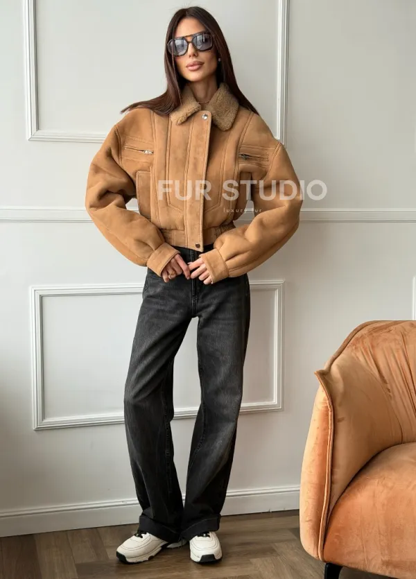 Зимняя женская дубленка - бомбер 102754